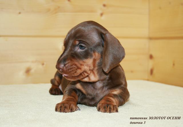 Такса стандартная гладкошерстная Сука 3. Окрас коричнево-подпалый ЗОЛОТО ОСЕНИ В...
