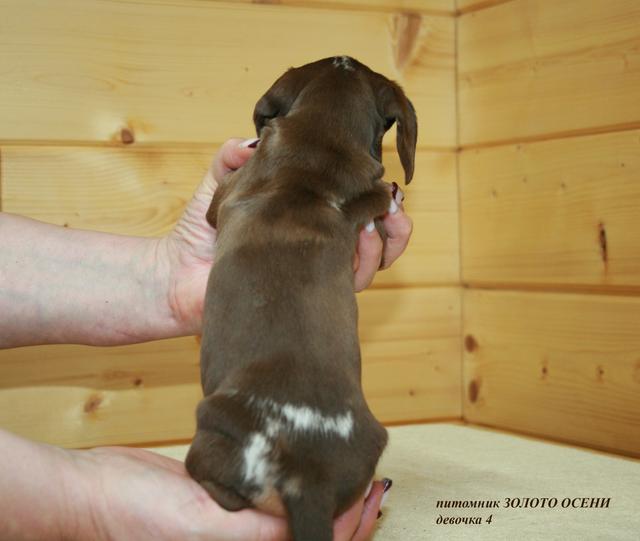 Такса стандартная гладкошерстная Сука 4. Окрас коричнево-подпалый мраморный ЗОЛОТО ОСЕНИ В...