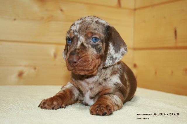 Такса стандартная гладкошерстная Кобель. Окрас коричнево-подпалый мраморный ЗОЛОТО ОСЕНИ В...